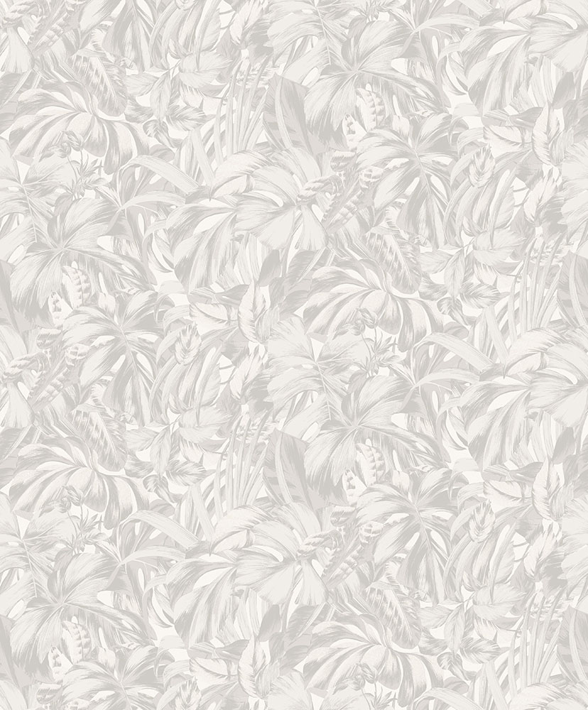 Tropisk skog möter skandinaviskt. En riklig tapet där monstera och palmblad får ta plats. Färgskalan går i en ljus grå ton, vilket gör att tapeten inte tar över för mycket, trots sitt täta mönster. Bonita finns i två färgställningar, här med en grå botten.
