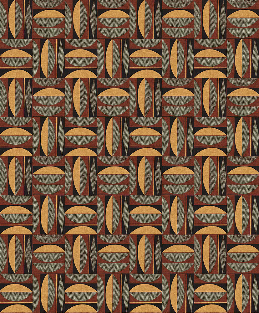 Pigga upp dina väggar med ett vackert geometriskt mönster och skapa en varm mystik i rummet. Tapeten Occidens Russet består av en svart botten och ett mönster i rött, koppar och grönt.