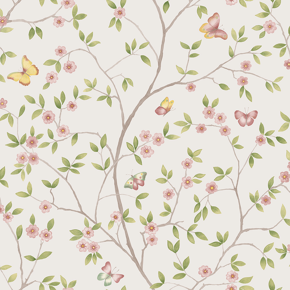 Fånga sommaren och njut av vackra slingrande grenar med gröna blad i sällskap av rosa små blommor och gula fjärilar som letar nektar. Med tapeten Hilma får du en lugn och stressfri tillvaro med en härlig aura i rummet. Hilma finns i tre färgställningar och är ritat av Hanna Wendelbo.