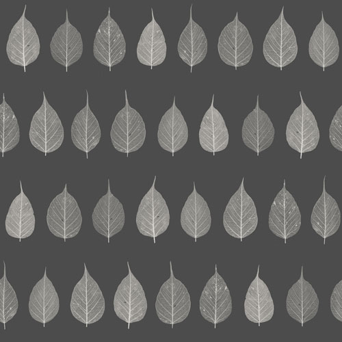 Mörkgrå tapet med gråbeige blad i rader.