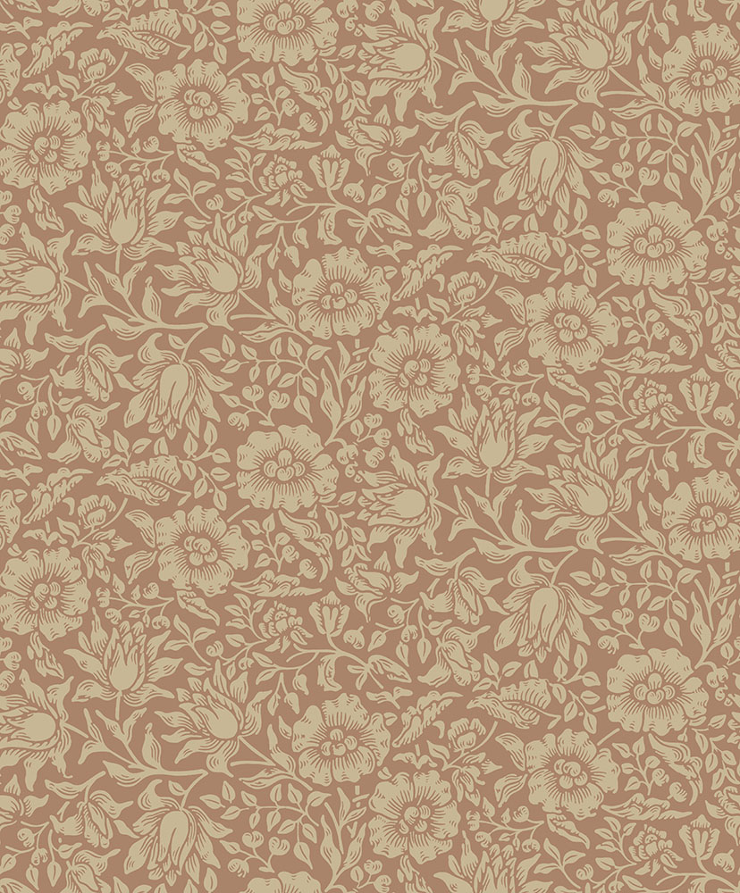 Med värme och charm tar mönstret Mallow över dina väggar. Den förtjusande malvablomman i beige flätas samman i ett upprepande mönster på en varm mjuk nyans av terrakotta. Du får ett välkomnande och inbjudande rum med Mallow på väggarna. Detta harmoniska mönster skapades år 1879 av William Morris.