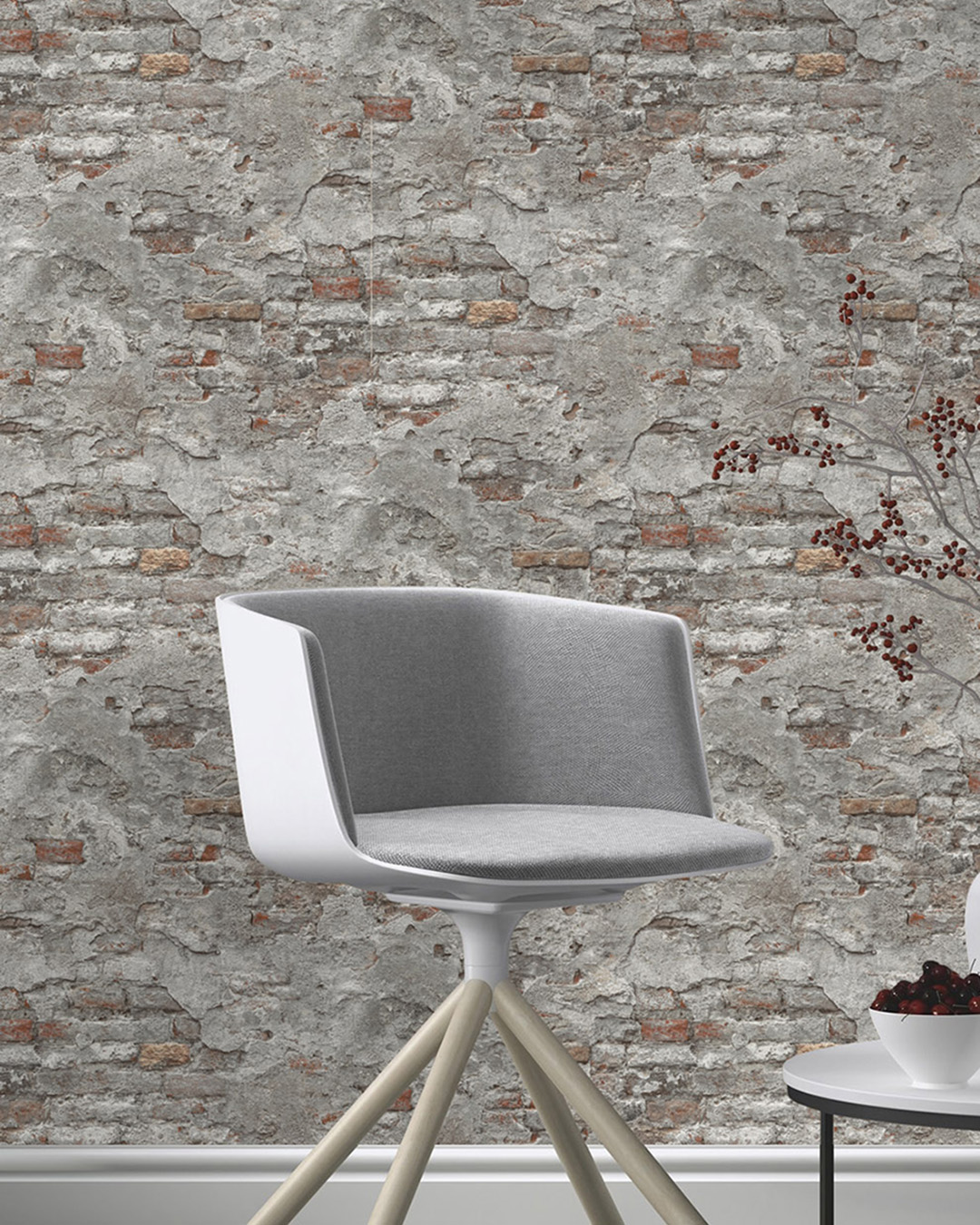 En tapet som föreställer en sliten tegelvägg i grått och rödbrunt. Ger rummet en industriell känsla. Detta mönster finns i 2 olika nyanser; art. 939330 är den mörka varianten. Tapeten ger en rå och häftig karaktär både i köket såväl som i sovrummet. Och vill du ha den ljusa istället, så väljer du artikel 939316.
