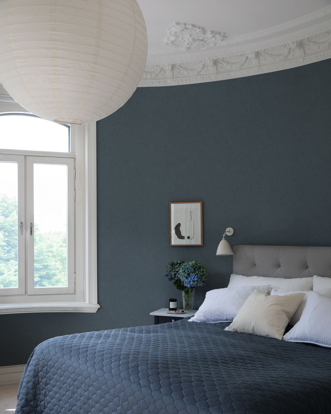Gör ett statement i ditt med med denna mörka petrolfärgade tapeten. Tapeten är enfärgad men tittar du på nära håll ser du ett lätt melerat mönster som sträcker sig över hela ytan av tapeten. Den här tapeten har en yta av kalkimitation och går i en skandinavisk och modern stil.