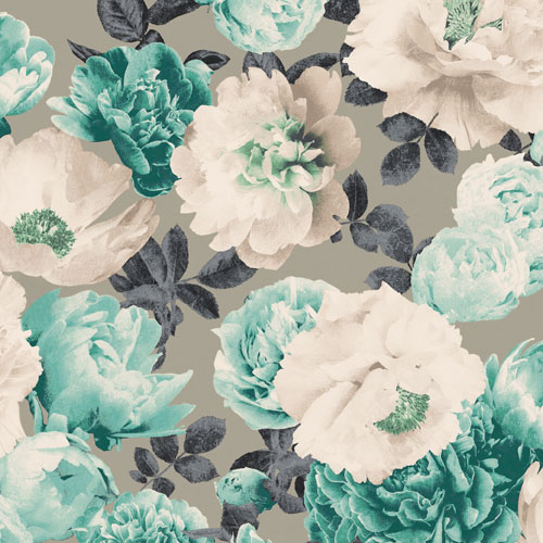 En neutral bas med en beige botten där de stora vackra rosorna i vitt och turkos får en möjlighet att ta för sig på väggarna. För dig som söker en tapet med ljus kulör men ett mönster som får sätta färg på väggarna är Rosegarden Sapphire det självklara valet.