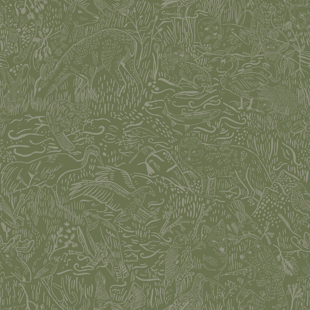 Med den natursköna barntapeten Landskapsdjur får Sveriges djur och natur klä barnrummets väggar. Den skogsgröna bottenkulören skapar en varm och mysig atmosfär där djurens mjuka uppsyn välkomnar ditt barn till härlig lek och stoj.