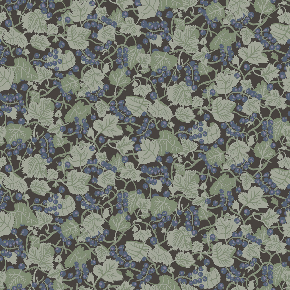 Låt vildvuxna vinbär frodas fritt på väggarna i hemmet såväl som i trädgården. De syrliga bären som påminner om pärlor samspelar fint ihop med ett vackert grönt badverk. Vinbärsplock kommer i två färgställningar, här med en svart botten och ett mönster i grönt och blått.