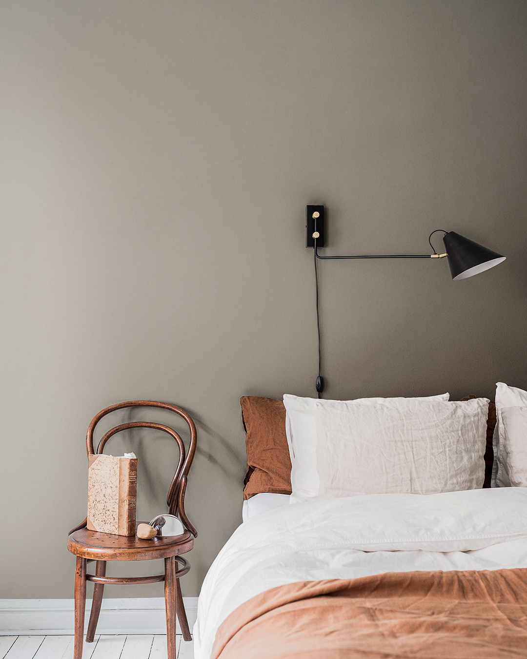 Lera är en varmgrå enfärgad tapet med inslag av bruna toner. En kulör som skänker värme och ger rummet en omfamnande känsla.