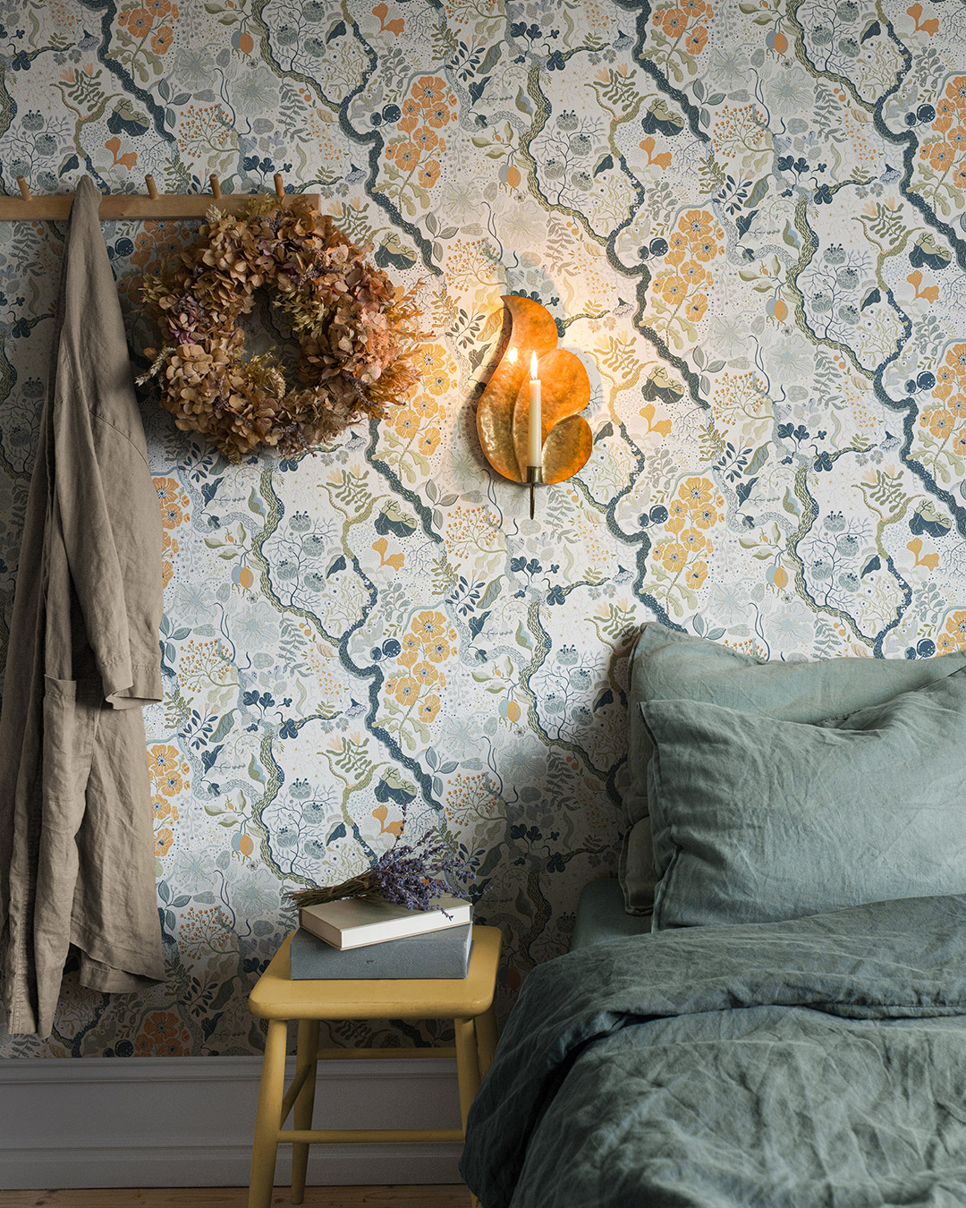 Ann är en ljuvlig blommig tapet, skapad av designern Lina Schnaufer. Med tapeten Ann får du en vägg likt en botanisk dröm. En prunkande växtlighet som försiktigt smyger sig fram på väggen. En fantastisk färgkombination som är lättsam för ögat och skapar ren fägnad.