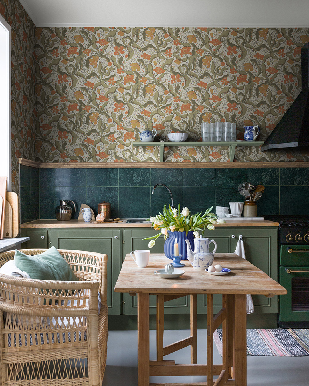 Bodri är en tapet skapat av Lina Schnaufer som ofta jobbat utan referenser för att finna de mest intressanta linjerna och uttrycken. Att enbart förhålla sig till en inre sinnebild av en viss blomma eller växtlighet skapar hon hellre en egen tolkning av denna. Här möts blommor i bränd orange mot en vit botten. Bodri finns totalt i sex färgställningar.