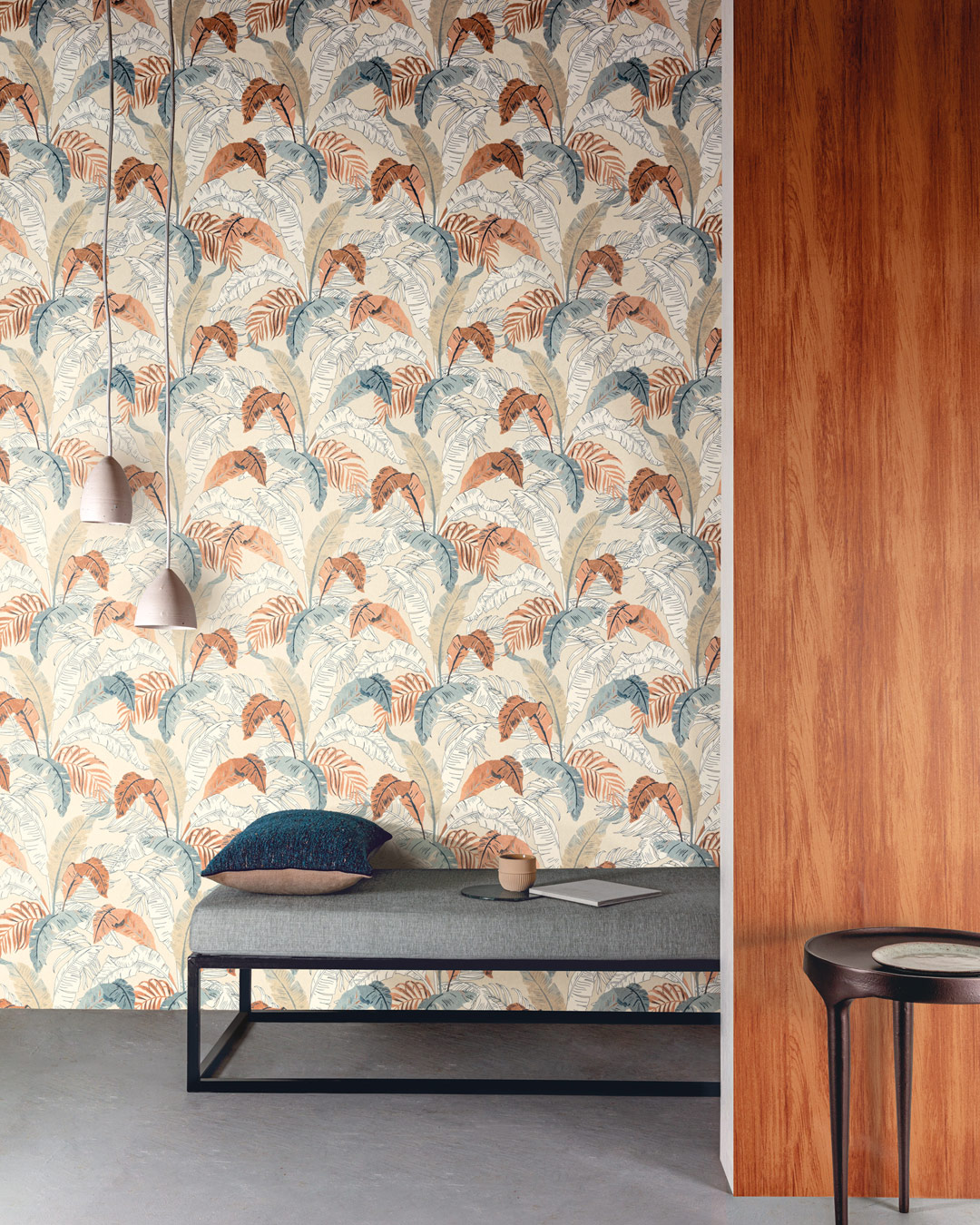 Mönstret Botanic Heaven klär väggen fint i rummet och skapar en ombonad känsla. Med en härlig touch av djungeltemat tar tapeten oss in bland djungelns djupa skog med lianer. Botanic finns i sex olika färgnyanser. Här ser du den i en neutral nyans, det ljuvliga bladmönstret går i brunt, vitt och grått mot en beige botten.