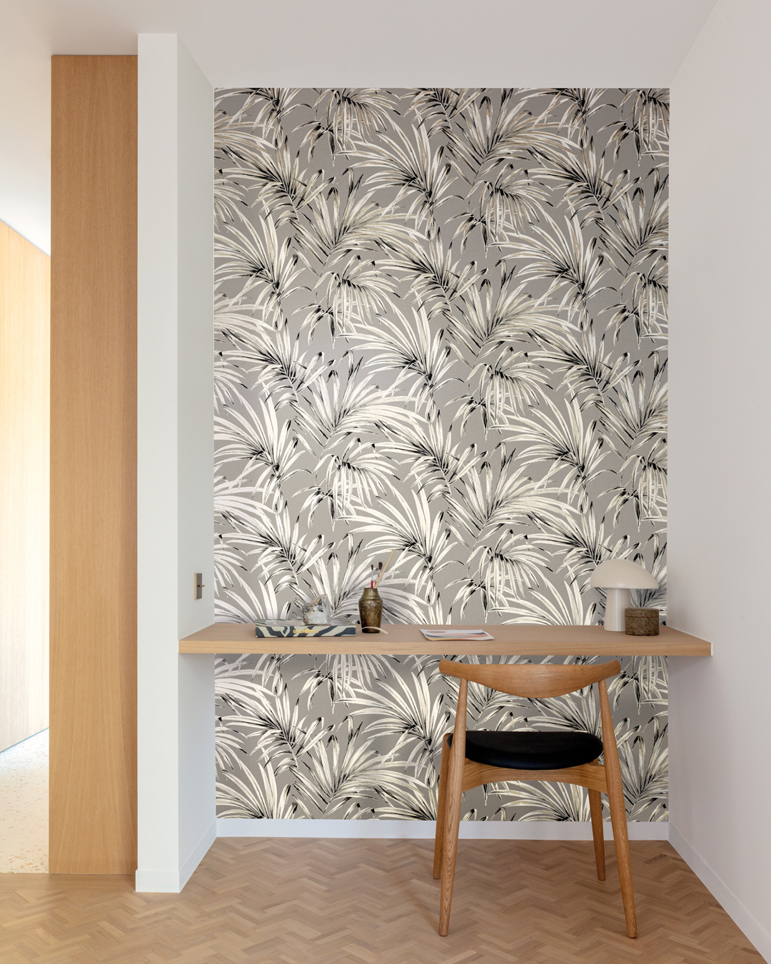Den eleganta tapeten Palm Midnight har ett mönster av elegans med skira palmblad på en fin grå botten. Känslan av denna tapet kan beskrivas med orden lyxig, modern, elegant. Ta in lyxigheten på väggen i ditt vardagsrum.