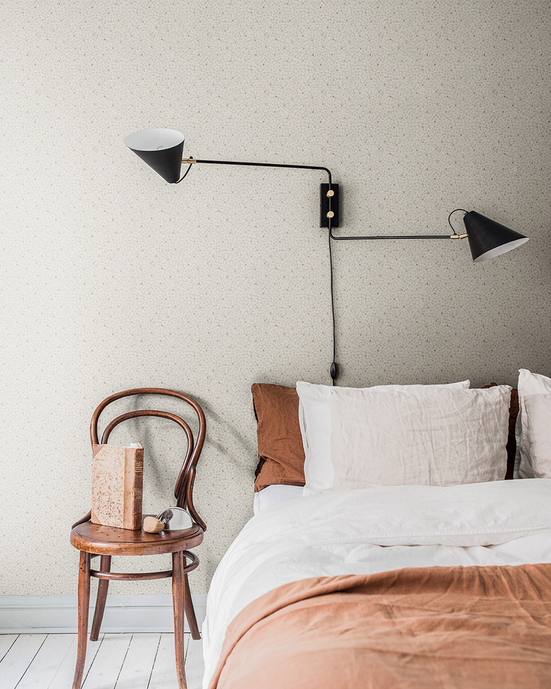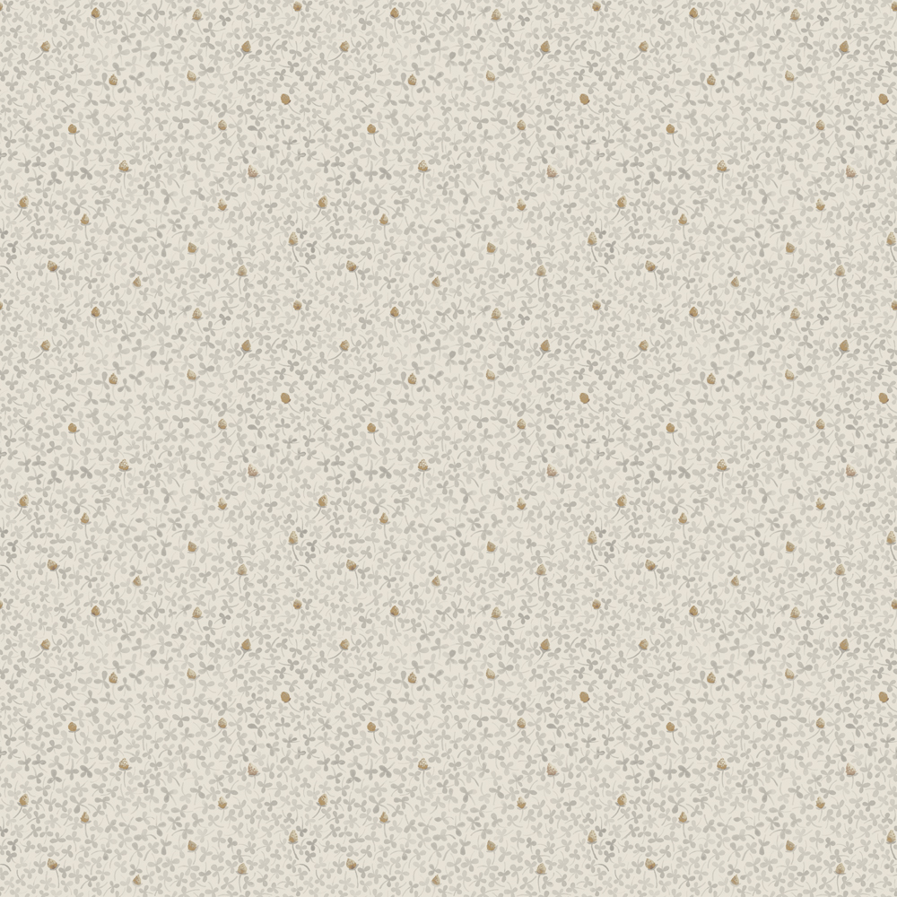 Klassisk beige tapet med klöver är i gott sällskap med smultron som subtilt reflekterar en guld metallic kulör. Mönstret Clover matchar du enkelt med annan tapet eller tapetserar i hela rummet. Denna tapet gör sig bra med både lantlig och gammaldags interiör som modern.