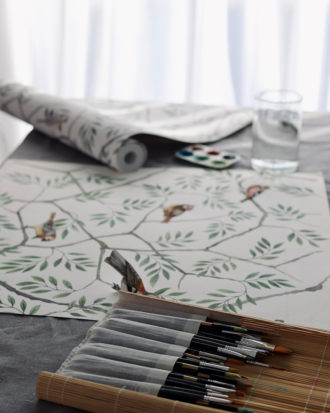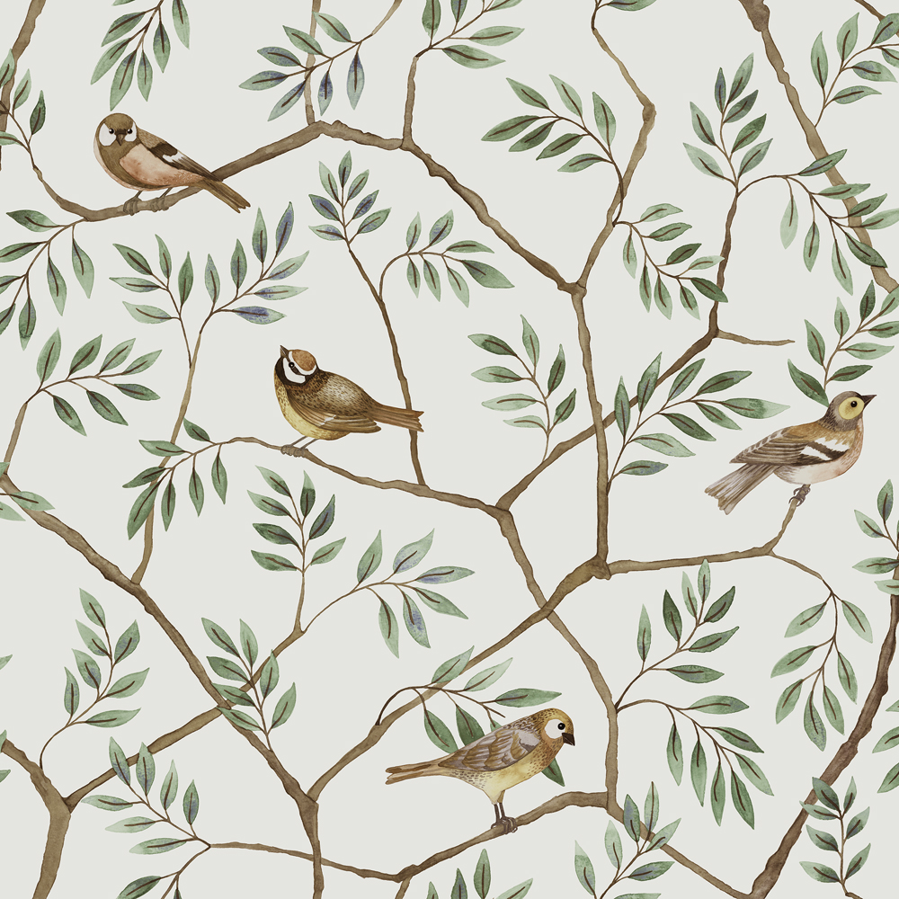 August med sina bedårande småfåglar och blommande grenar ger ett naturnära liv till hemmet. Tapetens klassiska färger med ljus botten och grenar i grönt och brunt får en att drömma sig tillbaka till fåglarnas kvitter under tidiga vårdagar. Mönstret finns i tre färgställningar, vilken blir din favorit?