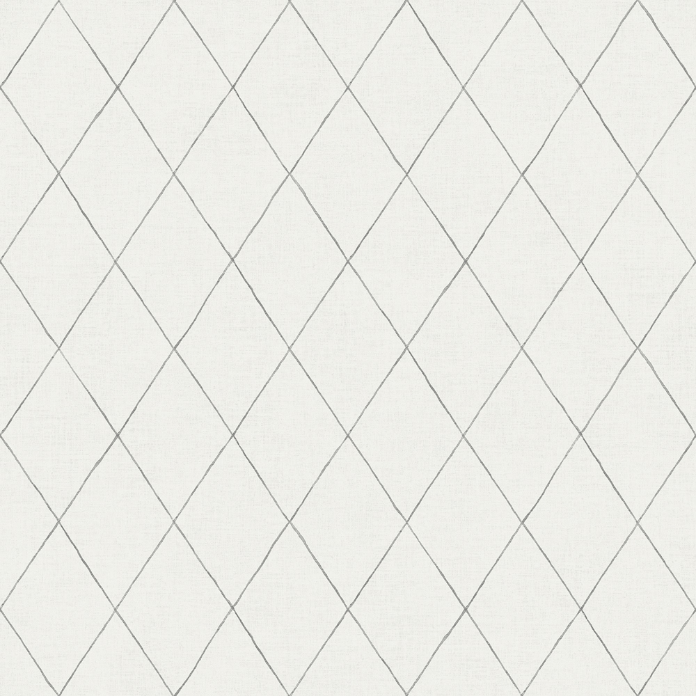 De handmålade linjerna i den äggskalsvita tapeten Ruben mjukar upp mönstrets trellisrutor som går i grått. Tapeten skapar ett tidlöst rum med en välkomnande känsla och fungerar fint som en övergång mellan olika rum med mer mönstrade tapeter.