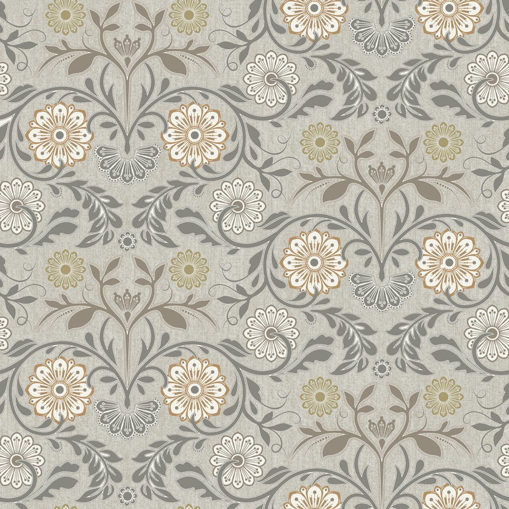 Zagora har ett vackert mönster som elegant pryder tapeten. Det ståtliga mönstret bjuder in till en känsla av lyx och elegans och helt plötsligt befinner du dig inuti ett vackert marockanskt palats. Tapeten Zagora finns i fyra färgställningar, här med en ljusgrå botten och ett mönster i beige och grått.