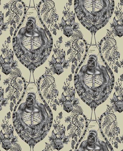 Handskissade gorillor mot en guldig botten hämtar sin inspiration från de evolutionära kopplingarna mellan oss människor och gorillor samt deras utrotningshotade status. Den reflekterande guldiga tapeten kommer skapa ett härligt ljusspel i rummet och sätta en unik prägel i rummet du väljer. Design: Emma J Shipley.
