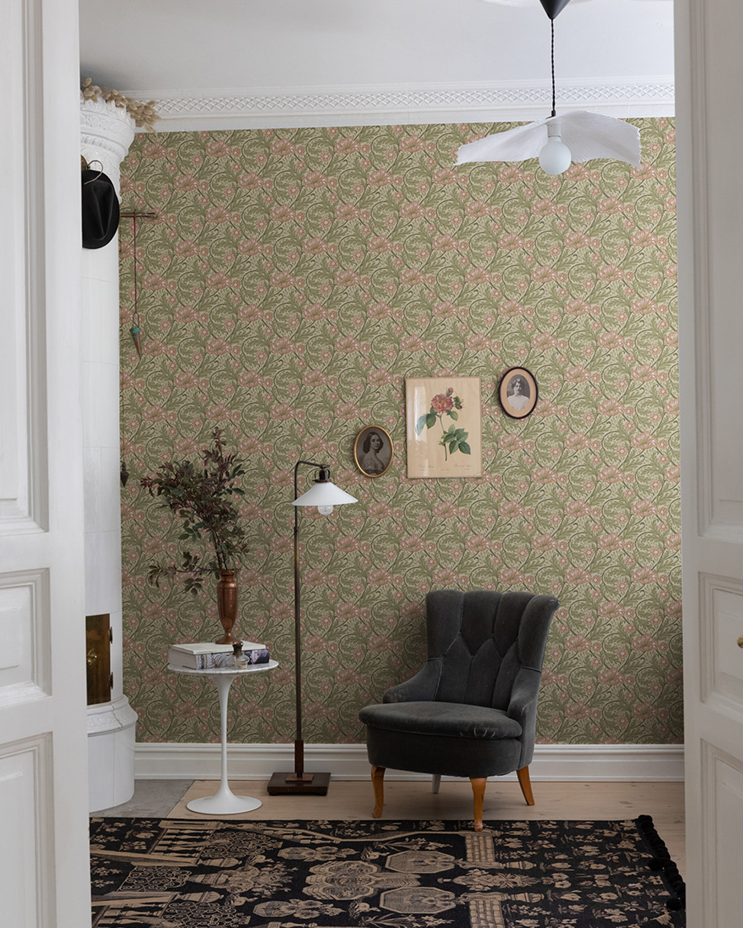 Genom ett unikt samarbete mellan William Morris Society och Midbec Tapeter har en samling av Morris-mönster nu åter fått liv i form av vackra tapeter. Som typiskt för Morris mönster får hans kärlek till naturen ta stor plats i denna tapetkollektion.