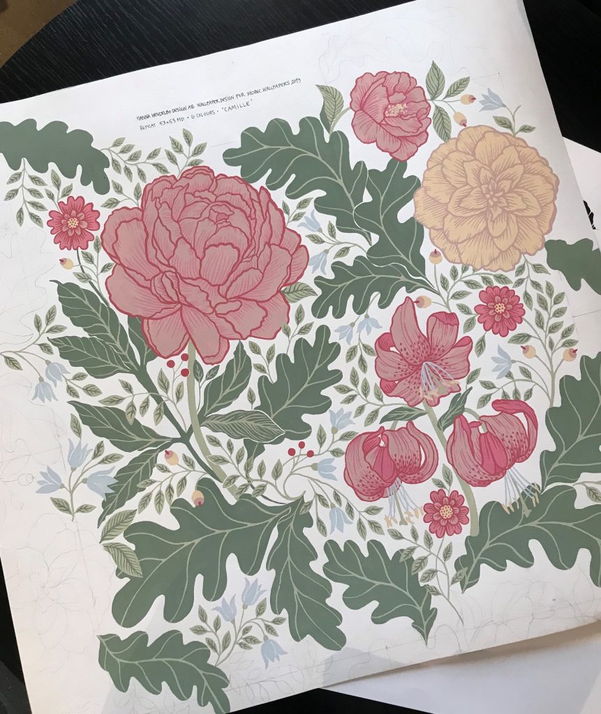 Kollektionen Långenäs är en samling handmålade mönster av Hanna Wendelbo. Här har Hanna lånat med sig blommor och blad från sin trädgård och med blyerts fångat känslan och formen på papper. Dessa organiska former får sedan flytta in i ett mönster där varje detalj handmålas. Ett omsorgsfullt arbete som får ta sin tid men som i sin tur formar mönster som håller för tidens tand och känns som en självklar del i ditt hem.