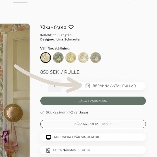 På varje tapetsida kan du räkna ut hur många rullar du behöver för just den specifika rullen. Vill du själv räkna ut måtten kan du besöka tapetkalkylatorn HÄR
